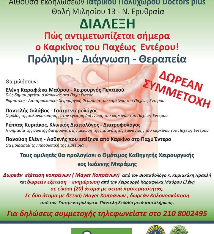 ΑρχικήΔΙΑΤΡΟΦΟΛΟΓΟΙ-ΔΙΑΙΤΟΛΟΓΟΙ ΝΕΑ ΕΡΥΘΡΑΙΑ ΚΗΦΙΣΙΑ, Κυριάκος Ρέππας Διαιτολόγος Νέα Ερυθραία   : :   Blog   : :   Μedia-Δράσεις   : :   Καρκίνος του Παχέως Εντέρου